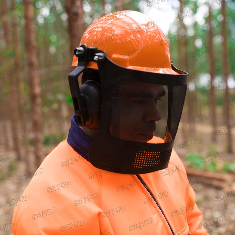 O Capacete de segurança, equipado com Protetor Auditivo de 16 dB e Protetor Facial de 8″ em nylon ou aço, é projetado para proteger os trabalhadores contra os riscos de impacto na cabeça, níveis indesejáveis de ruídos e partículas voláteis presentes nas atividades envolvendo motosserras.”